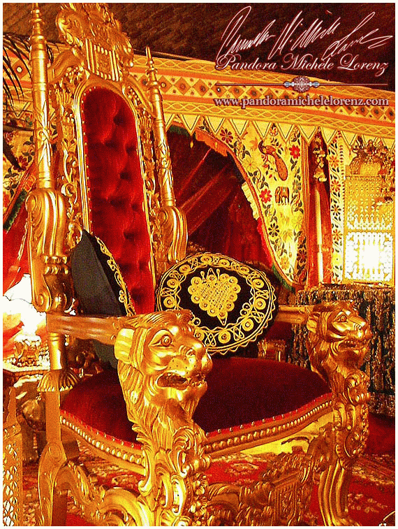 Thronstühle - Maße H = 180 cm, B = 100 cm, T = 75 cm.
